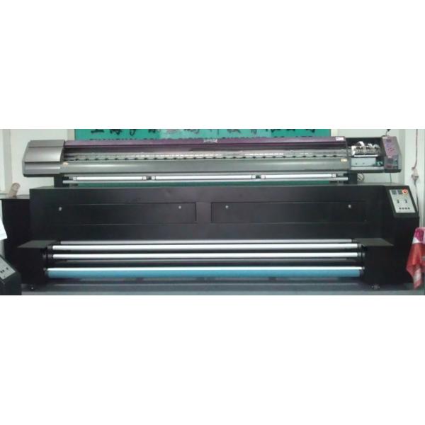 It includes a linear guide drive structure, XY axis coding system, multi-channel ink supply system, heating system on both front and rear platform, media absorption system, and print heads auto-service station. Besides, it also has a paper handling system that can bear loads up to 70kg, and a drying system. The printer weights about 220kg in total and 90% of its components are very durable.